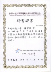 | 2014年9月2日 (二) 03:07 | 財團法人鞋類暨運動休閒科技研發中心 研習證書.jpg (檔案) | 83 KB | Ching | 1 | ||
