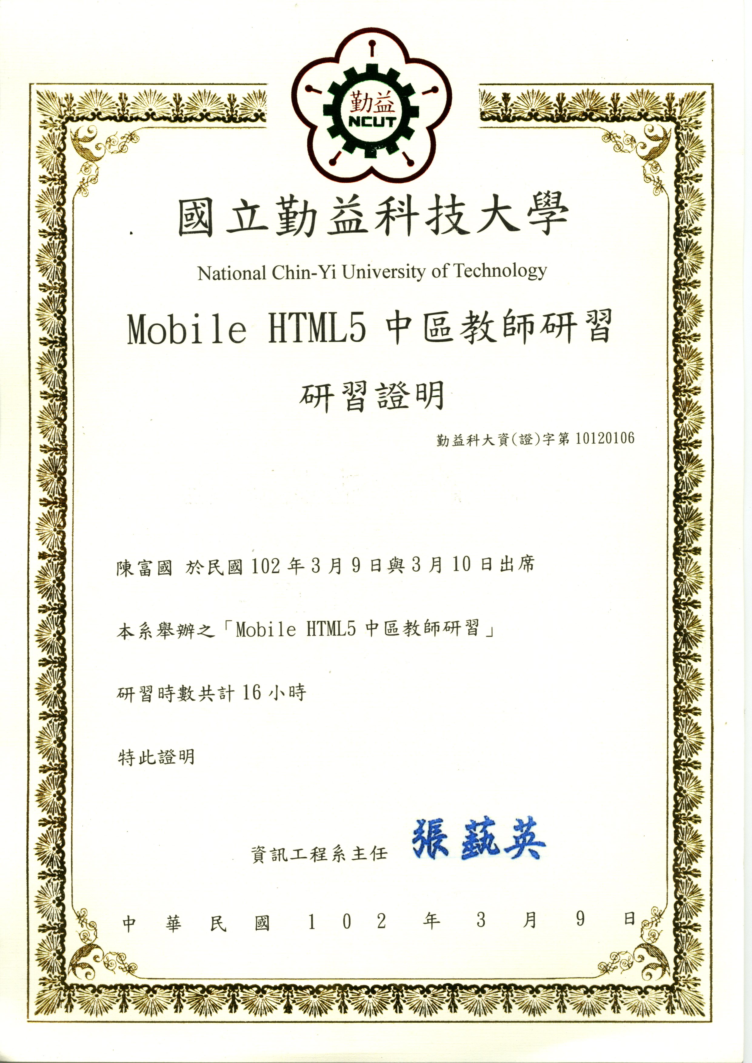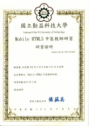 | 2013年4月1日 (一) 03:03 | 勤益科大研習證明001.jpg (檔案) | 1.01 MB | MsUpload | 1 | |